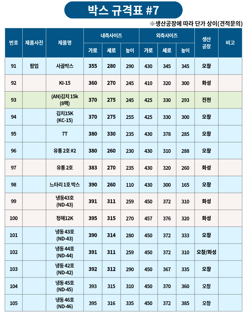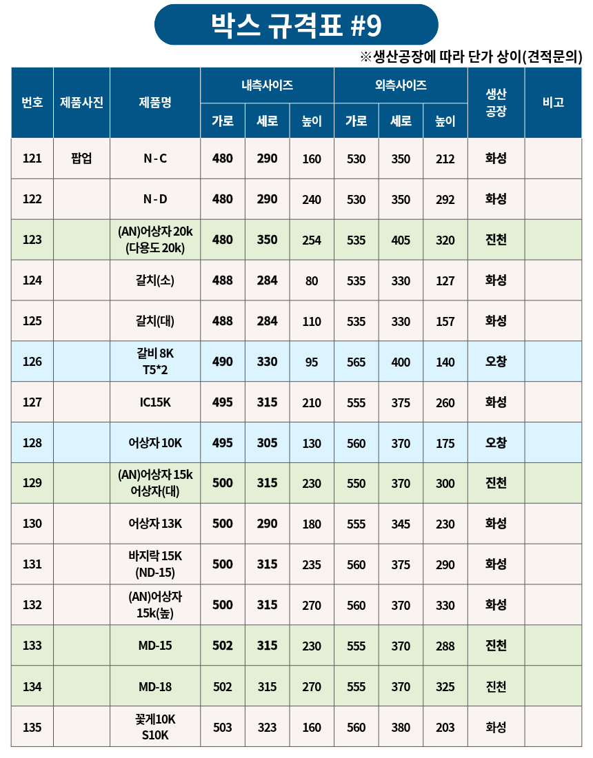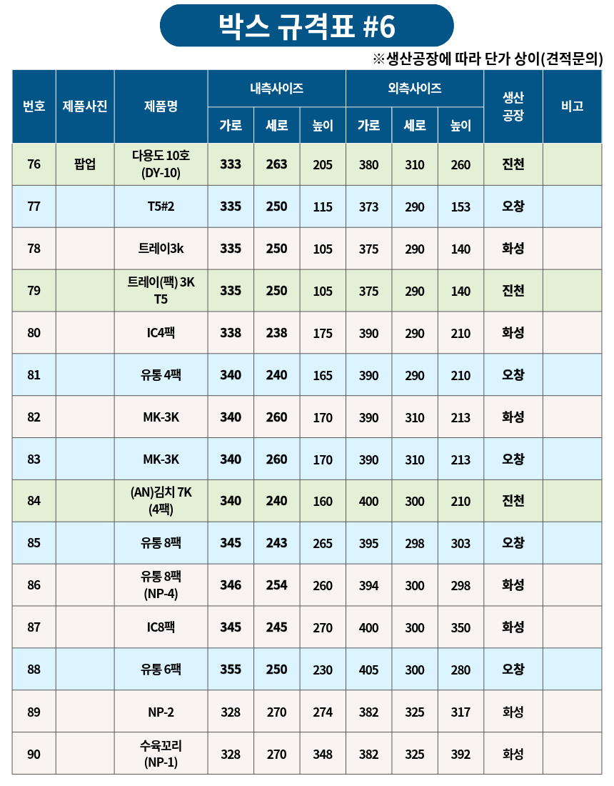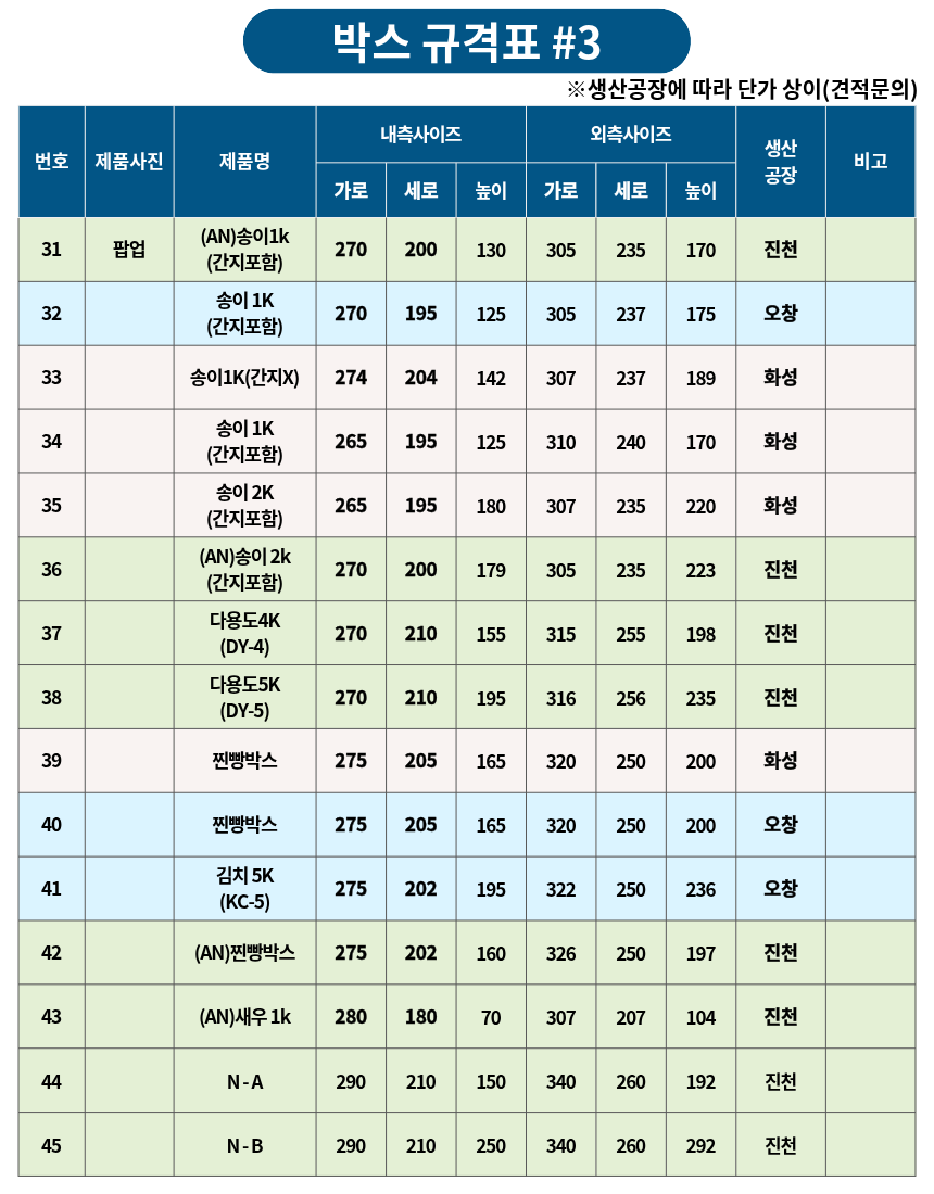 박스 규격표