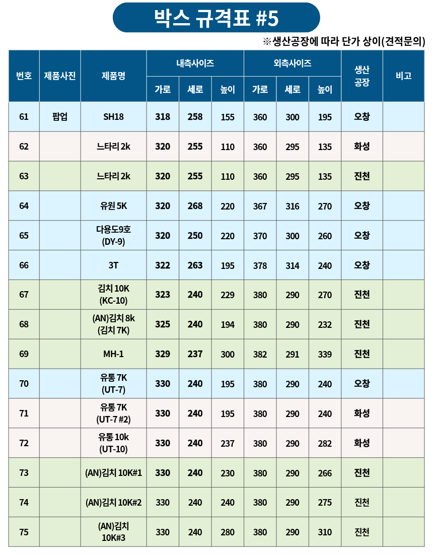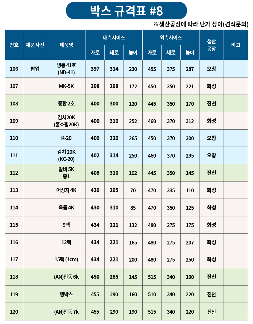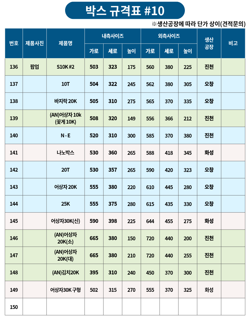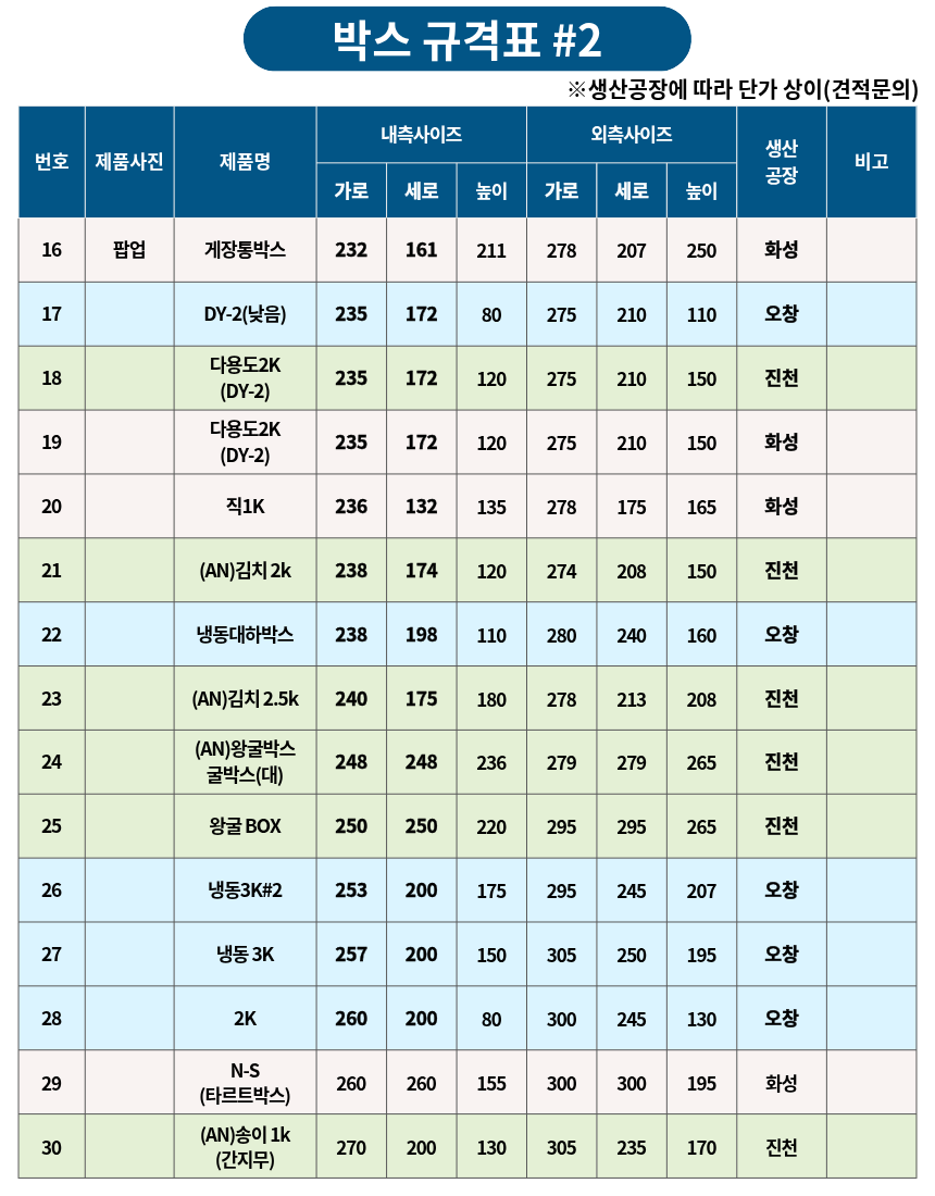박스 규격표